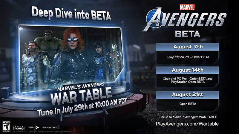 סקוואר-אניקס חשפה השבוע את מועדי הבטא של המשחק "Marvel's Avengers"( "הנוקמים") ונראה כי קרוב אלינו מתמיד. אך לפני הבטא, החברה מתכוונת להעביר שידור מיוחד של Marvel's Avengers War Table Digital Stream באמצעות הערוץ הרשמי של PlayAvengers.com. שידור זה יתקיים ב-29 ביולי, ובו היא מתכוונת לחשוף מידע רב על הקונספט, ובעיקר תצלול אל תוך התוכן של המשחק.