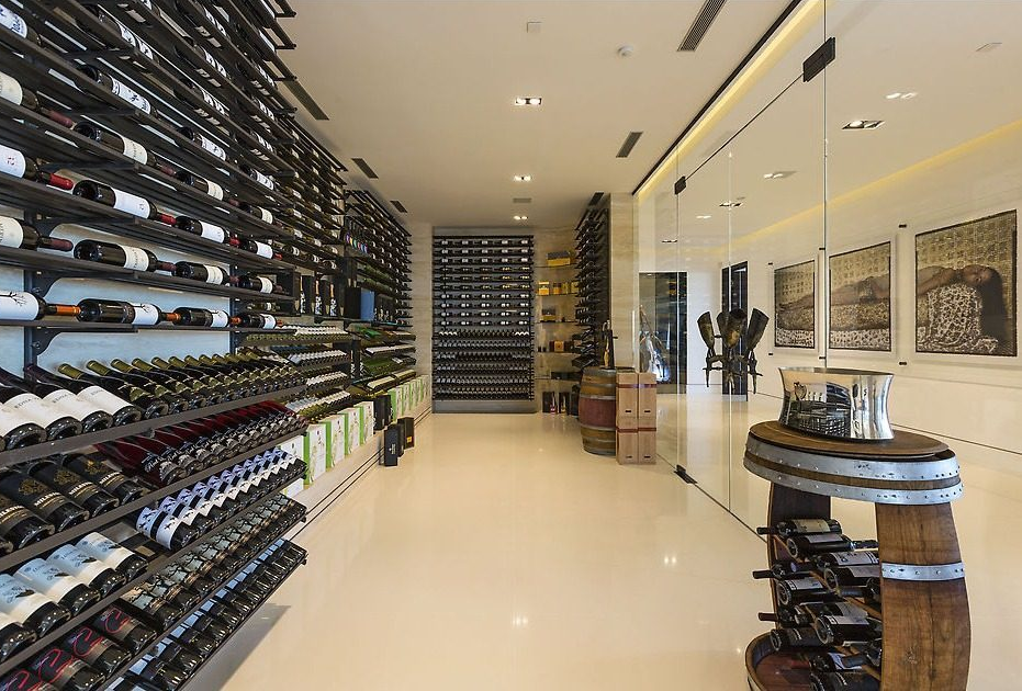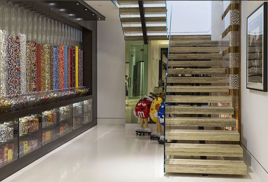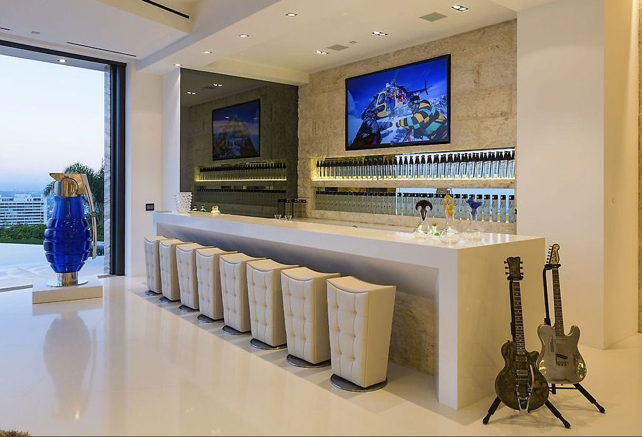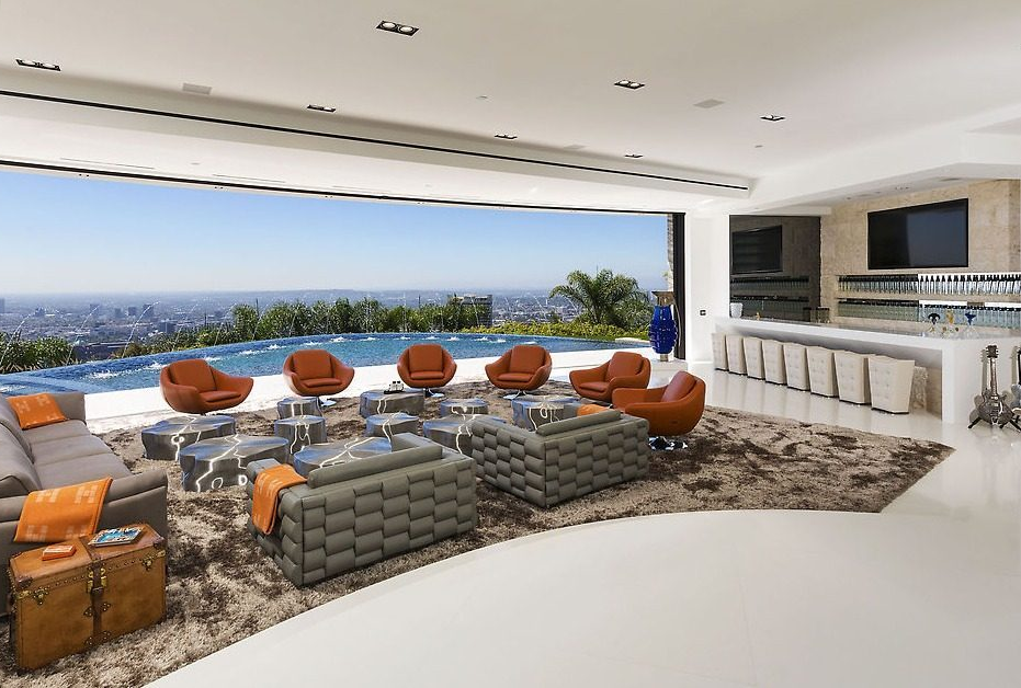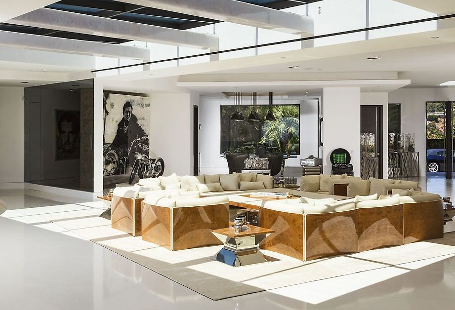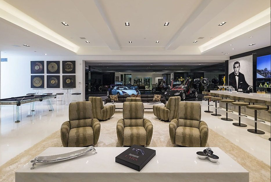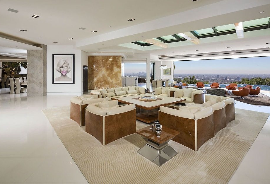 בפנים האחוזה ניתן למצוא: חדר ממתקים, חדר ראווה של מכוניות, בר וודקה וטקילה, חדר קולנוע עם 18 מקומות, שלושה מסכי 90 אינץ' קעורים שמקרינים מהגג מבט פנורמי על לוס אנג'לס, רפליקה של האופנוע של ג'יימס דין, רפליקה בצבע כרום של מכונת היריה Ma Deuce, כ-8 חדרי שינה ו-15 חדרי שירותים אשר כל אחד מהם כולל אסלות נירוסטה של טוטו בעלות של 5,600 דולר לכל אסלה (כן, החרא שלו שווה יותר, ליתר דיוק, החרא שלו שווה 330 אלף שקל).