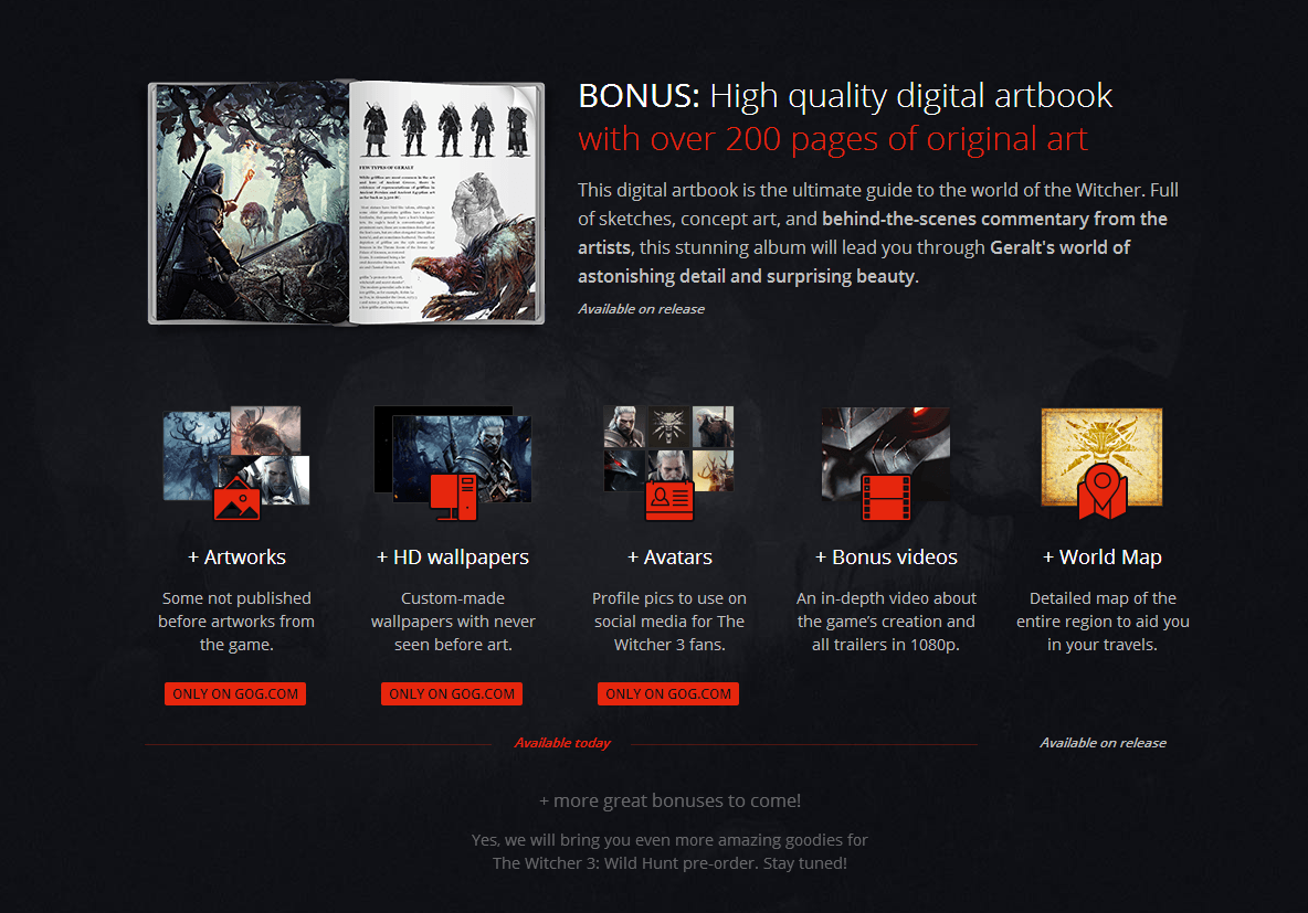 - הובטח שבונוסים נוספים יגיעו עד יציאת המשחק בהזמנה מוקדמת.