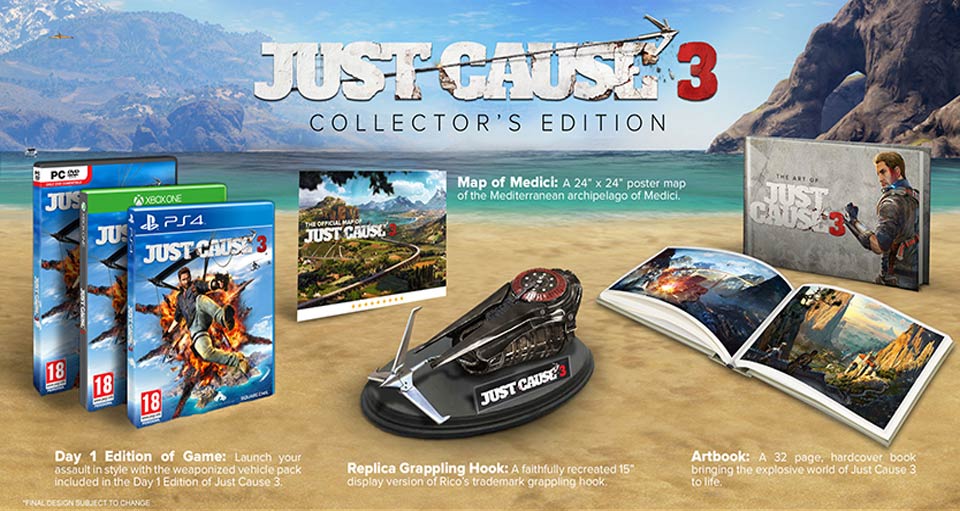 בסוף השבוע האחרון חשפה סקוואר אניקס את מהדורת האספנים של JC3 שתכיל פוסטר של מפת מדיצ'י (עולם המשחק) וגם את רפליקת וו-האחיזה של ריקו בגודל 15 אינץ' (38 ס"מ).